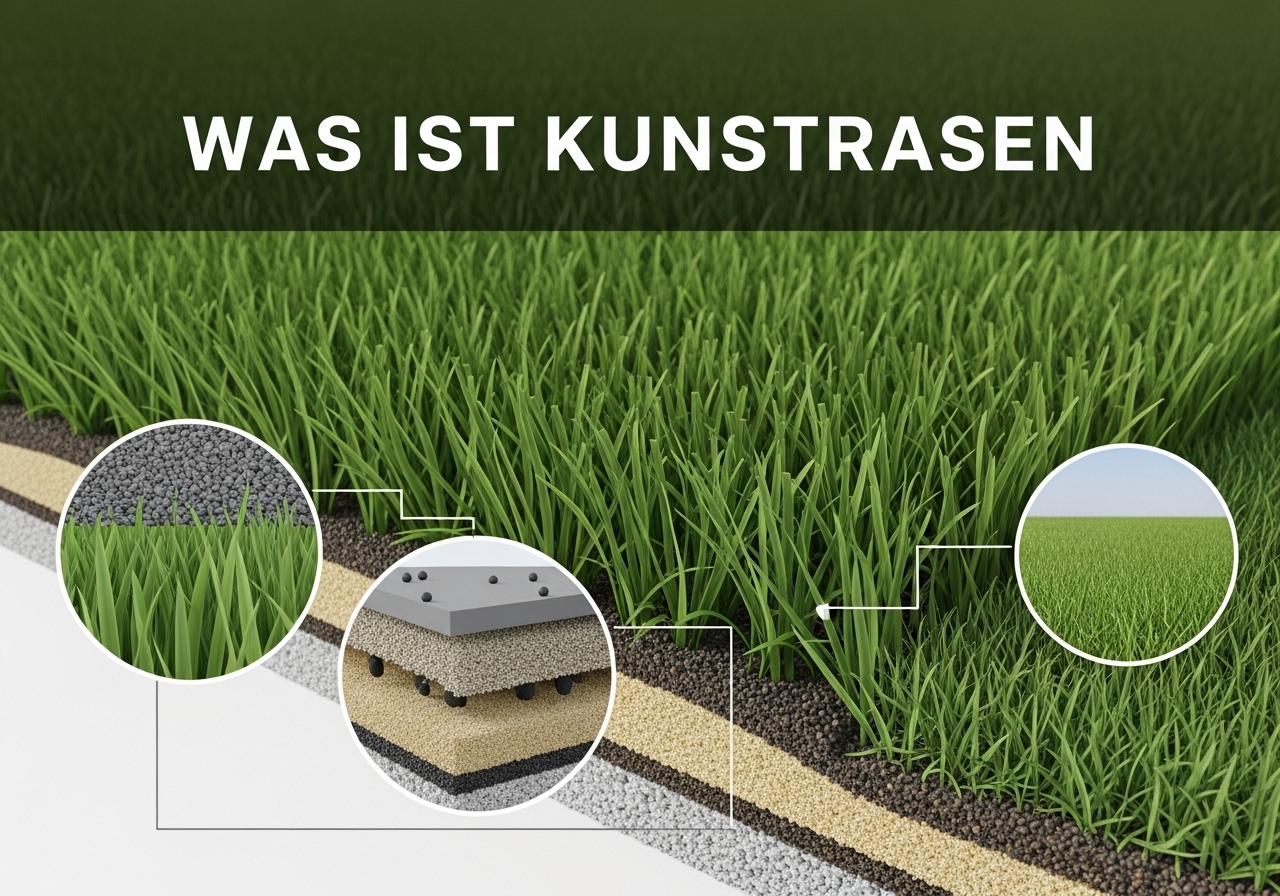 Kunstrasen besteht aus synthetischen Materialien wie Polyethylen, Polypropylen oder Polyamid. Die „Grashalme“ werden in die Trägerschicht getuftet, wobei die sogenannte Stichzahl (also die Anzahl der Fasern pro 10 cm) über Dichte und Optik entscheidet. Kunstrasen gibt es meist in 2- oder 4-Meter-Rollen und er kann im Garten, auf Terrassen, Balkonen oder in Innenhöfen verlegt werden.