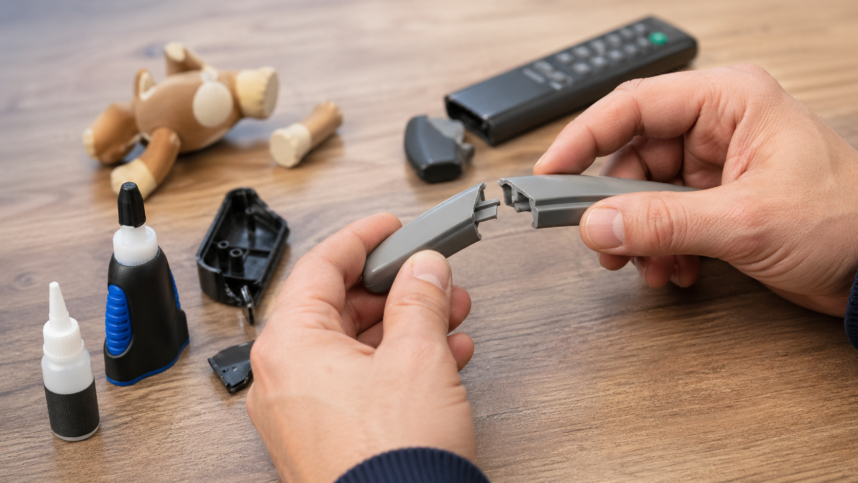 Beim Plastik zusammenkleben entscheidet der Klebstoff über die Haltbarkeit der Reparatur. Es gibt viele Kunststoffarten, deshalb funktioniert nicht jeder Kleber auf jedem Material gleich gut. Für einfache Reparaturen im Haushalt reicht oft ein guter Sekundenkleber aus. Er eignet sich zum Beispiel für kleine Brüche an Fernbedienungen, Spielzeug, Dekoartikeln, Verschlüssen oder harten Kunststoffteilen.